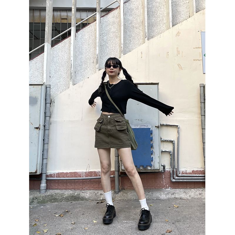 Detail Red Dongri adalah teknik pemanggilan gadis panas berambut keriting!Rok ramping gadis seksi musim panas rok pinggang tinggi