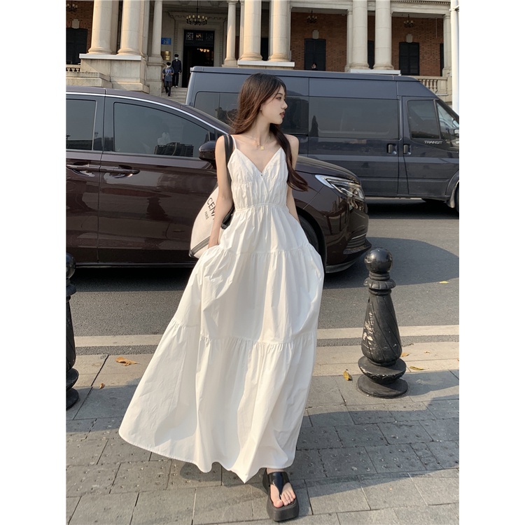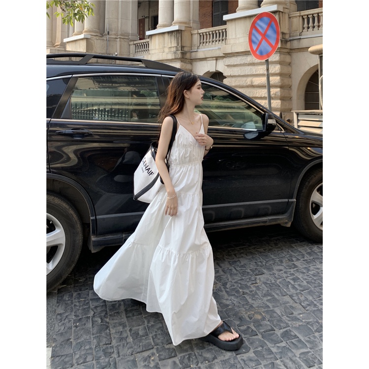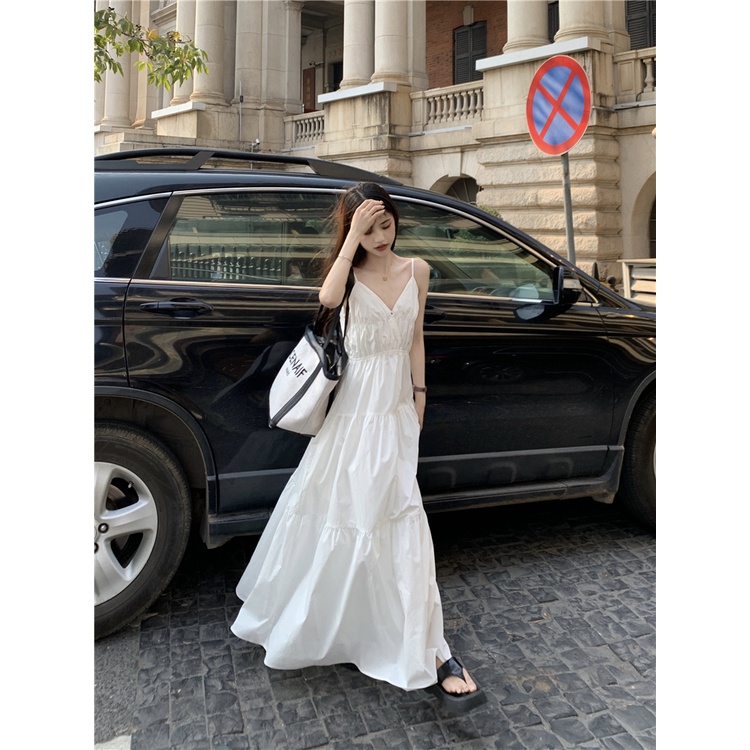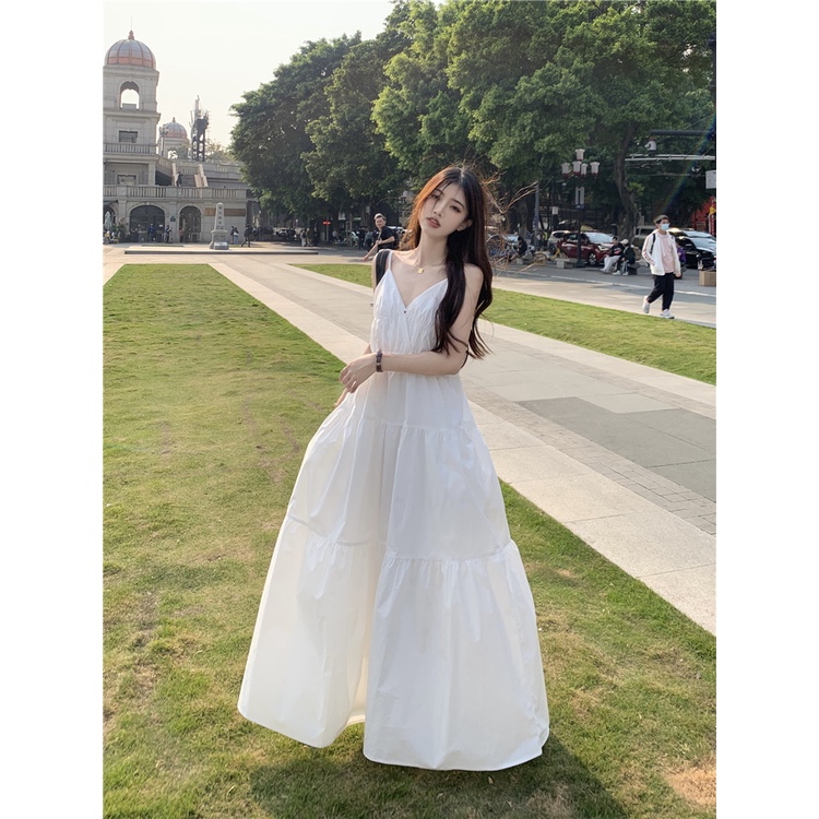 Pakaian Wanita > Batik > Dress Batik > Red dreesGaun peri putih perancis, rok suspender, gaun liburan tepi laut, rok musim panas pelangsing perempuan, ceruk temperamen, rok panjang