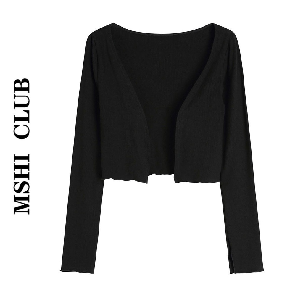 Pakaian Wanita > Batik > Atasan Batik > Red Es Sutra Cardigan Pendek Jaket Wanita Musim Panas Baru Slim Tipis Hitam Luar Memakai Bagian Tipis Spice Girl lengan Panjang Top