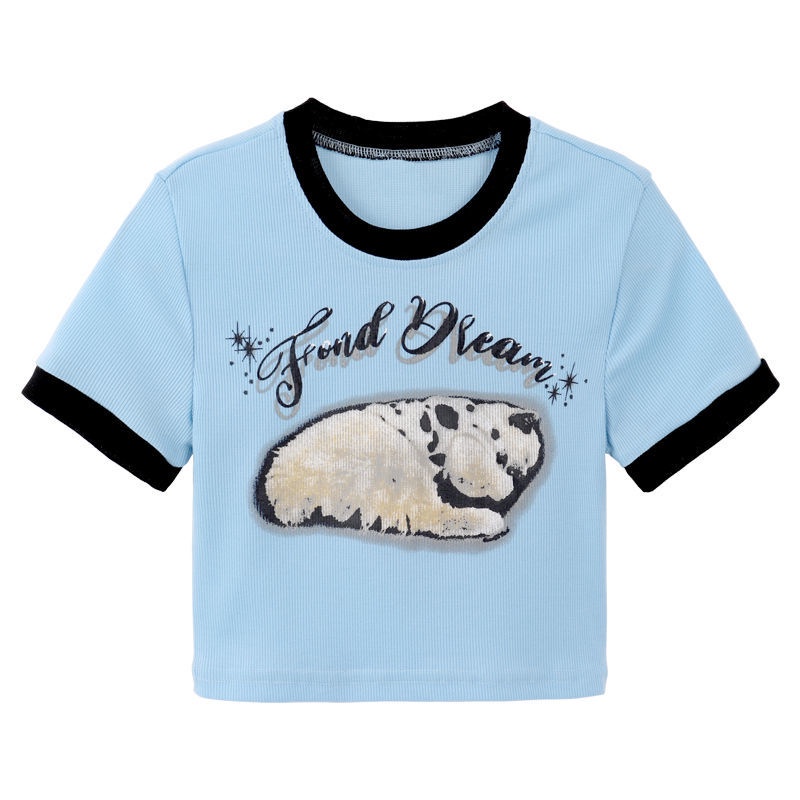 Detail Red Gadis Seksi Kucing Bahu T-shirt Wanita Musim Panas 2022 Baru Retro Slim Biru Lengan Pendek Pendek Pedas Manis Top Ins