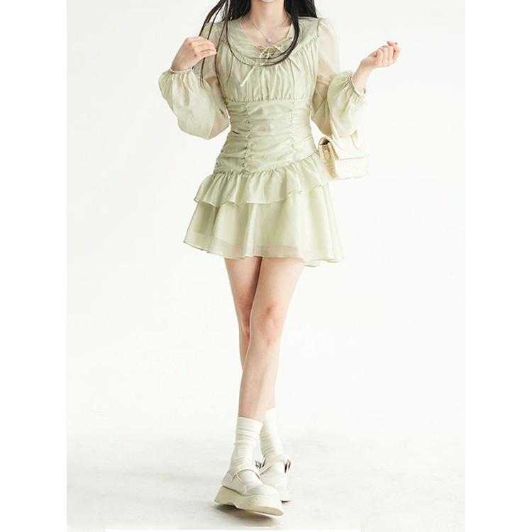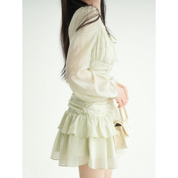 Detail Red Gaun gadis panas awal musim semi 2023 musim semi dan musim panas baru pinggang kecil gaya Prancis ceruk lipit rok peri pasang