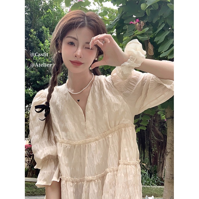 Red Gaun manis dan pedas, high-end, kecil, rok boneka longgar, gadis seksi, rok pendek v-neck, putri keinginan murni ceruk