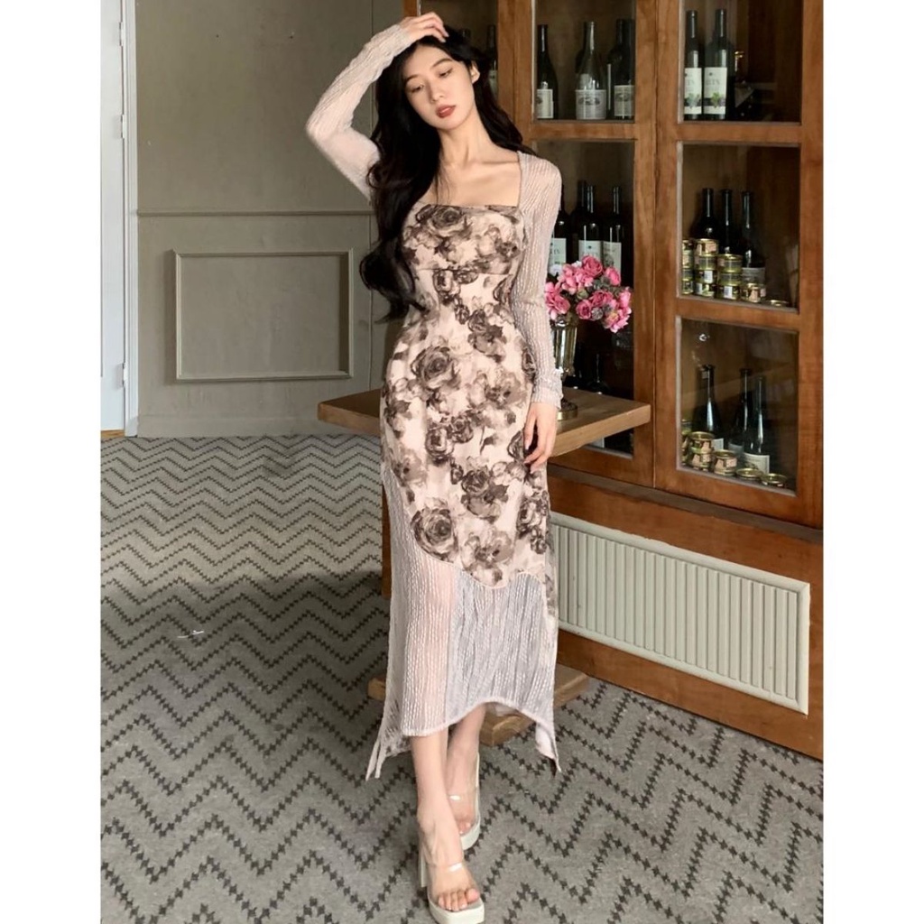 Red Gaun musim semi dengan temperamen Prancis, desain bunga retro, desain ramping dan lembutRed Gaun musim semi dengan temperamen Prancis, desain bunga retro, desain ramping dan lembut