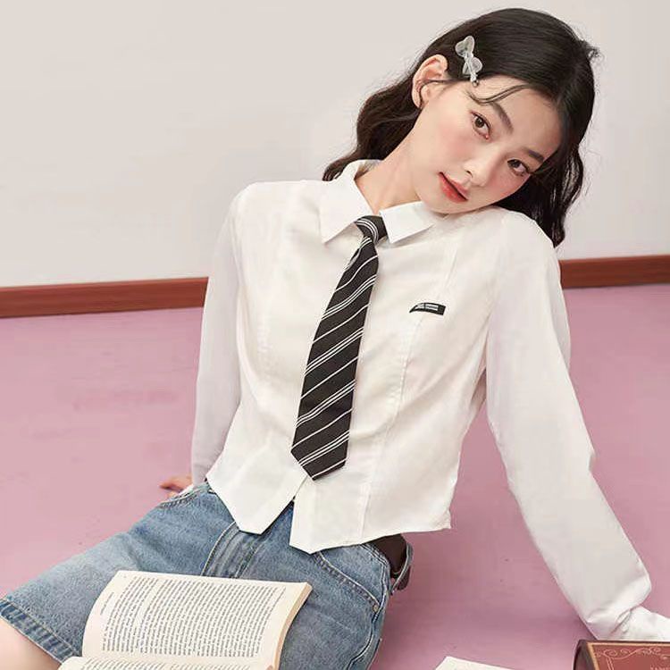 Pakaian Wanita > Batik > Atasan Batik > Red Gaya kampus pinggang jk kemeja lengan panjang wanita 2022 musim gugur rasa desain baru kemeja ceruk manis dan pedas atasan pendek