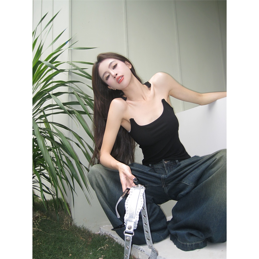Detail Red Hitam Tak Terlihat Kamisol Wanita Musim Panas Seksi Desain Mesin Hati-hati Rasa Orang Kecil