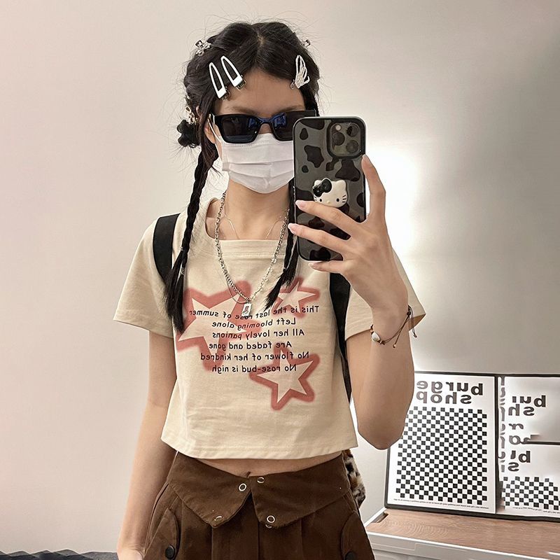 Red Hot girl pendek chic manis keinginan murni angin top budidaya diri all-match manis dan pedas lengan pendek t-shirt wanita tren gaun pusar