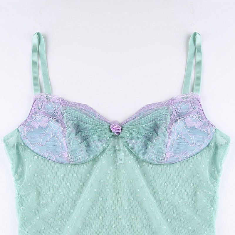 Detail Red IAMHOTTY Romantis Ungu Mawar Renda Mesh Kasa Keinginan Manis Rompi Wanita Manis Pedas Seksi Perspektif Sling Top Wanita