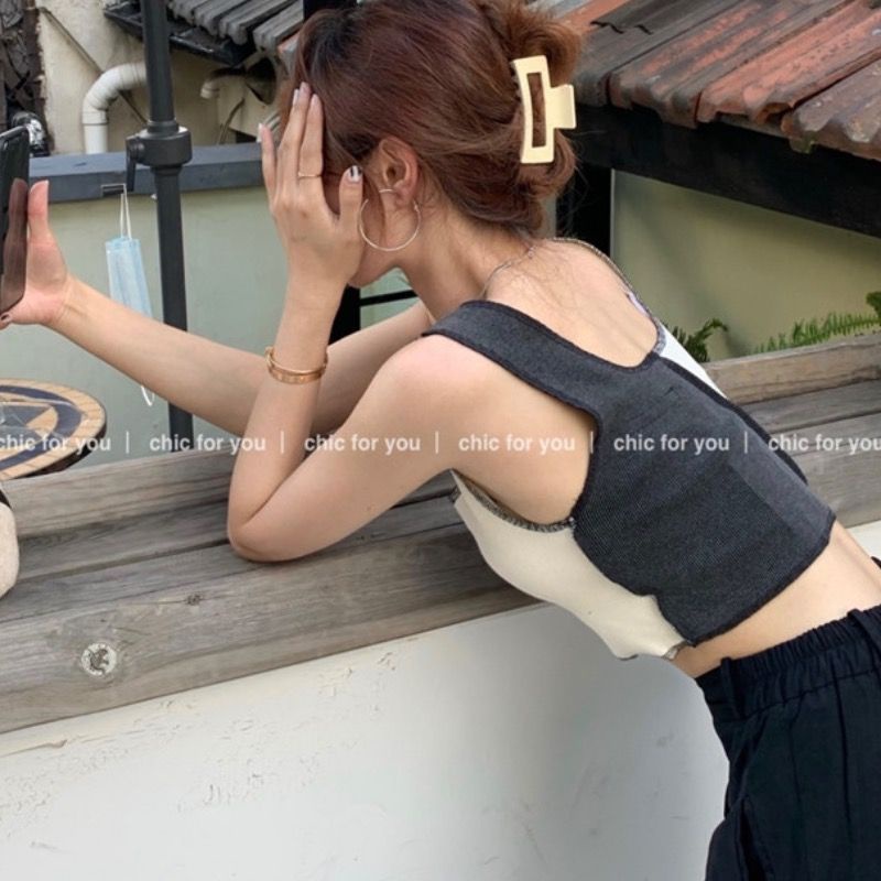 Detail Red Ins minoritas Korea Selatan gaya asing warna kontras penyambungan bagian pendek pusar terbuka rompi tipis suspender + blus lengan panjang tidak beraturan trendi