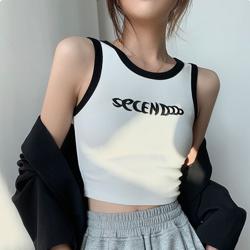 Detail Red Kamisol Pakaian Luar Musim Panas Wanita 2023 Baru Bagian Tipis Bagian Pendek Pusar Kemeja Putih Slim Fit Tanpa Lengan Bottoming Top