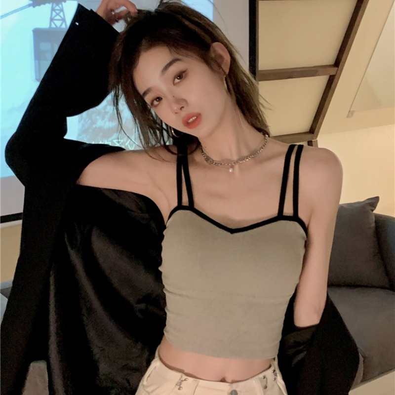Pakaian Wanita > Batik > Atasan Batik > Red Kamisol pakaian luar wanita dengan bantalan dada tube top rasa desain ceruk gadis-gadis panas manis dengan top bottoming belakang cantik yang chic