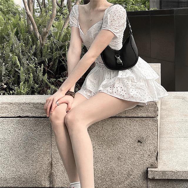 Detail Red Kecenderungan siswa adalah keinginan murni untuk susu ~ Gaya Korea retro gaya asing yang mengurangi usia garis leher persegi kosong tepi daun teratai pinggang rok celana pendek gadis