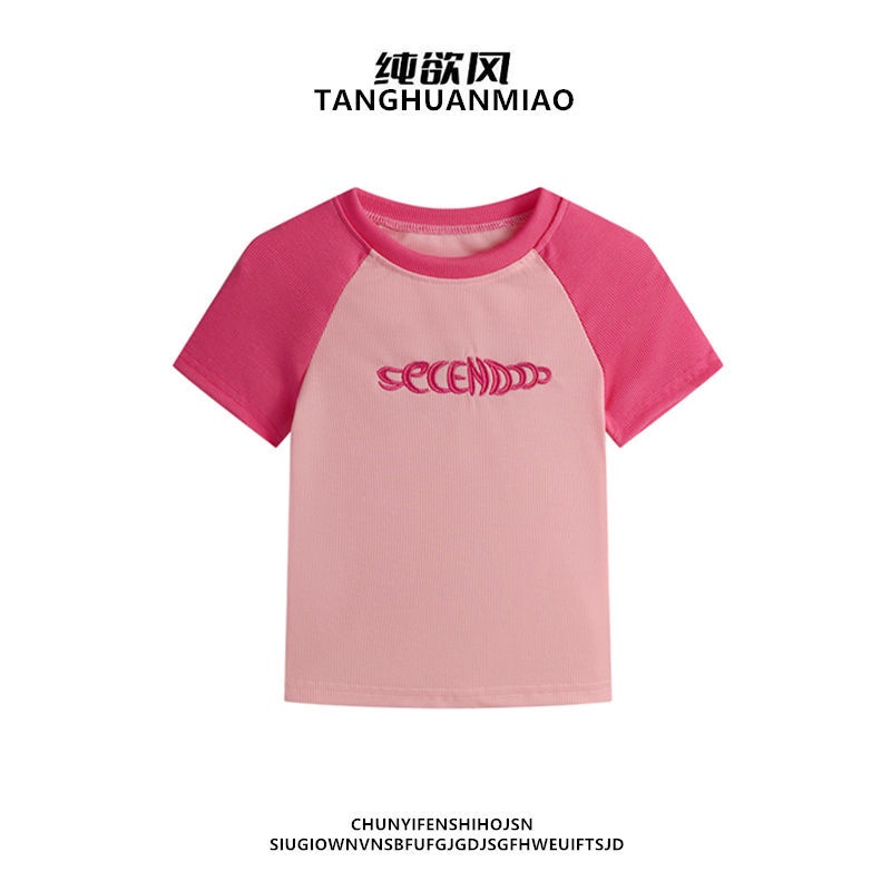 Detail Red Keinginan Murni Gaya Pendek Top Hot Girl Slim Musim Panas Lengan Pendek T-shirt Wanita Amerika Desain Retro Rasa Niche In Manis dan Pedas