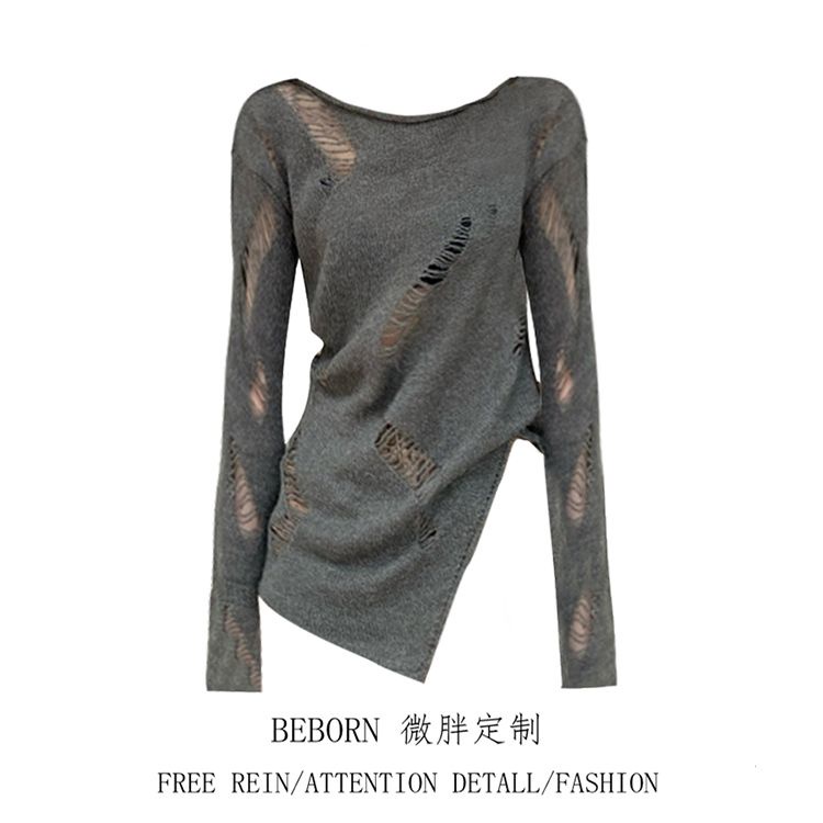 Pakaian Wanita > Sweater & Cardigan > Red Mikro-Lemak Kustom Keinginan Murni Gadis Panas Berongga Sweter Rajut Wanita Ukuran Besar Bagian Tipis Rasa Desain Ramping Lengan Panjang Celah Atasan Trendi