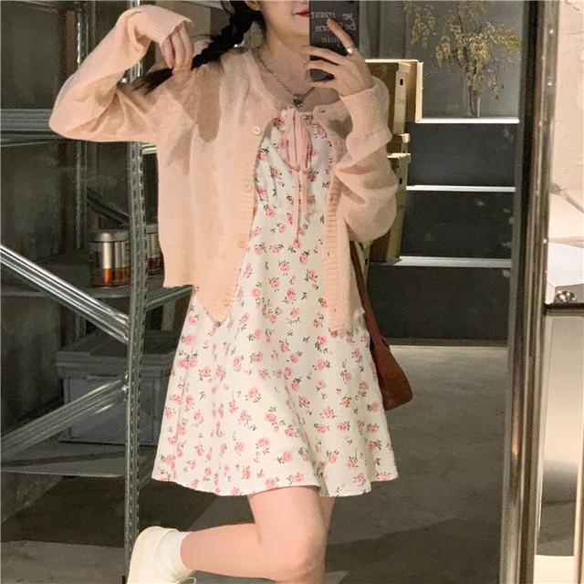 Pakaian Wanita > Batik > Set Wanita Batik > Red Musim Panas 2023 Baru One-Piece Wanita Net Merah Usia Mengurangi Bunga Bottoming Suspender Gaun + Pendek Perlindungan Matahari pakaian