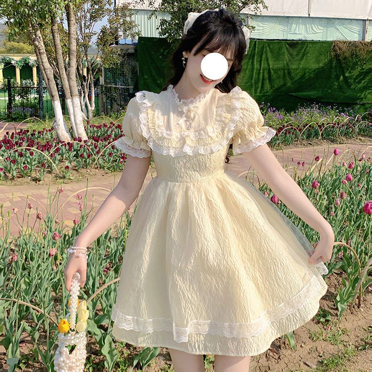Pakaian Wanita > Batik > Dress Batik > Red Musim Panas Perancis Manis Super Peri Ikatan Simpul Renda Jacquard Bagian Pendek Slim Pinggang Tinggi Gaun Putri untuk Wanita