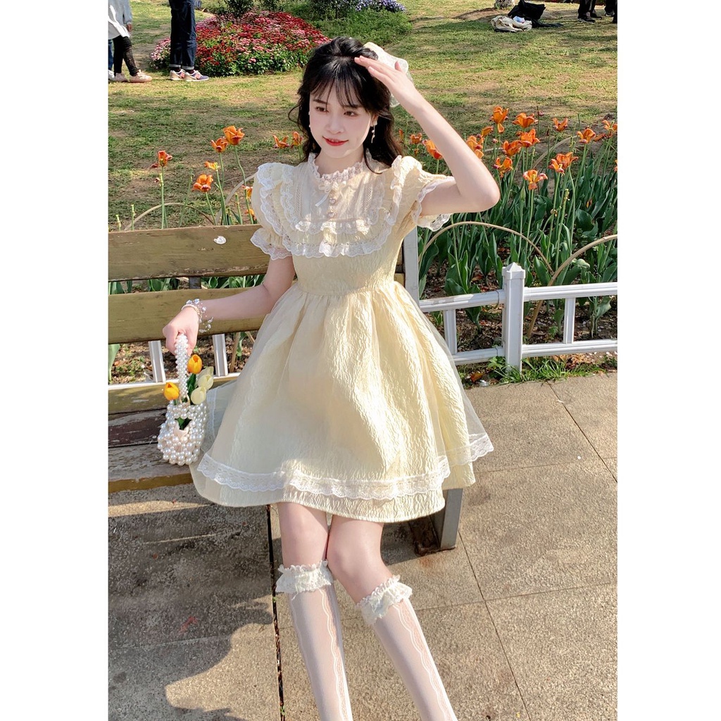 Red Musim Panas Perancis Manis Super Peri Ikatan Simpul Renda Jacquard Bagian Pendek Slim Pinggang Tinggi Gaun Putri untuk Wanita