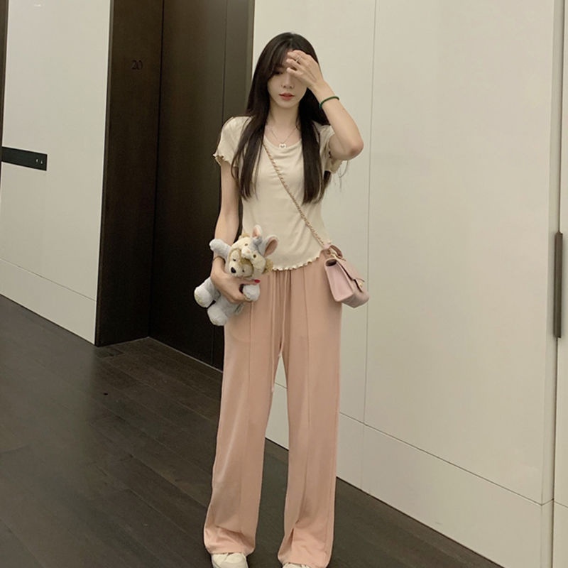 Red Pure Desired Angin Lengan Pendek T-shirt Wanita Musim Panas 2023 Baru Budidaya Diri dan Pelangsing Bagian Pendek Kemeja Top dengan Kayu Telinga