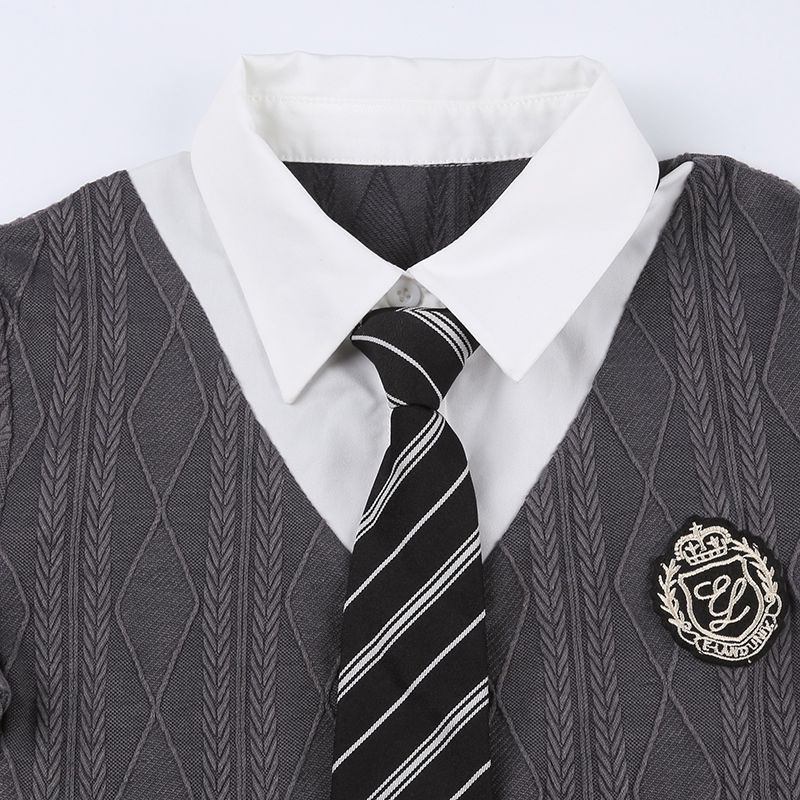 Red Rapcopter gaya perguruan tinggi Amerika rajutan T-shirt wanita dua potong palsu warna hit POLO + dasi atasan ramping manis dan pedas