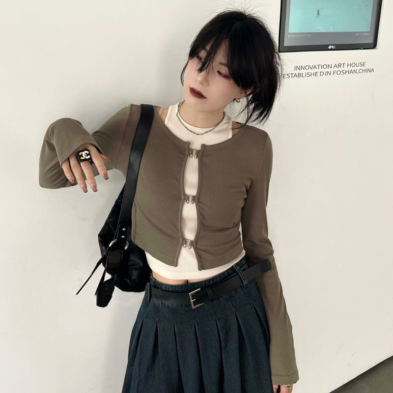 Pakaian Wanita > Batik > Atasan Batik > Red Rasa desain musim gugur rajutan pendek dua potong wanita gaya manis dan pedas ceruk rompi ketat chic + kardigan kecil warna solid
