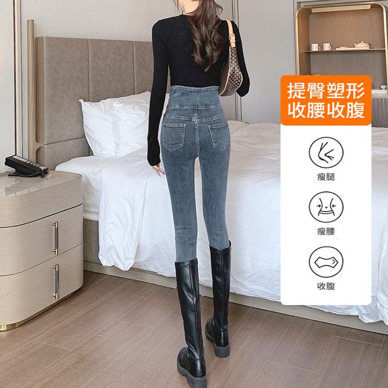 Pakaian Wanita > Batik > Bawahan Batik > Red Skinny jeans pinggang tinggi wanita skinny three-breasted button plus beludru menebal perasaan desain ceruk musim gugur dan musim dingin self-budidaya elastis pelangsing
