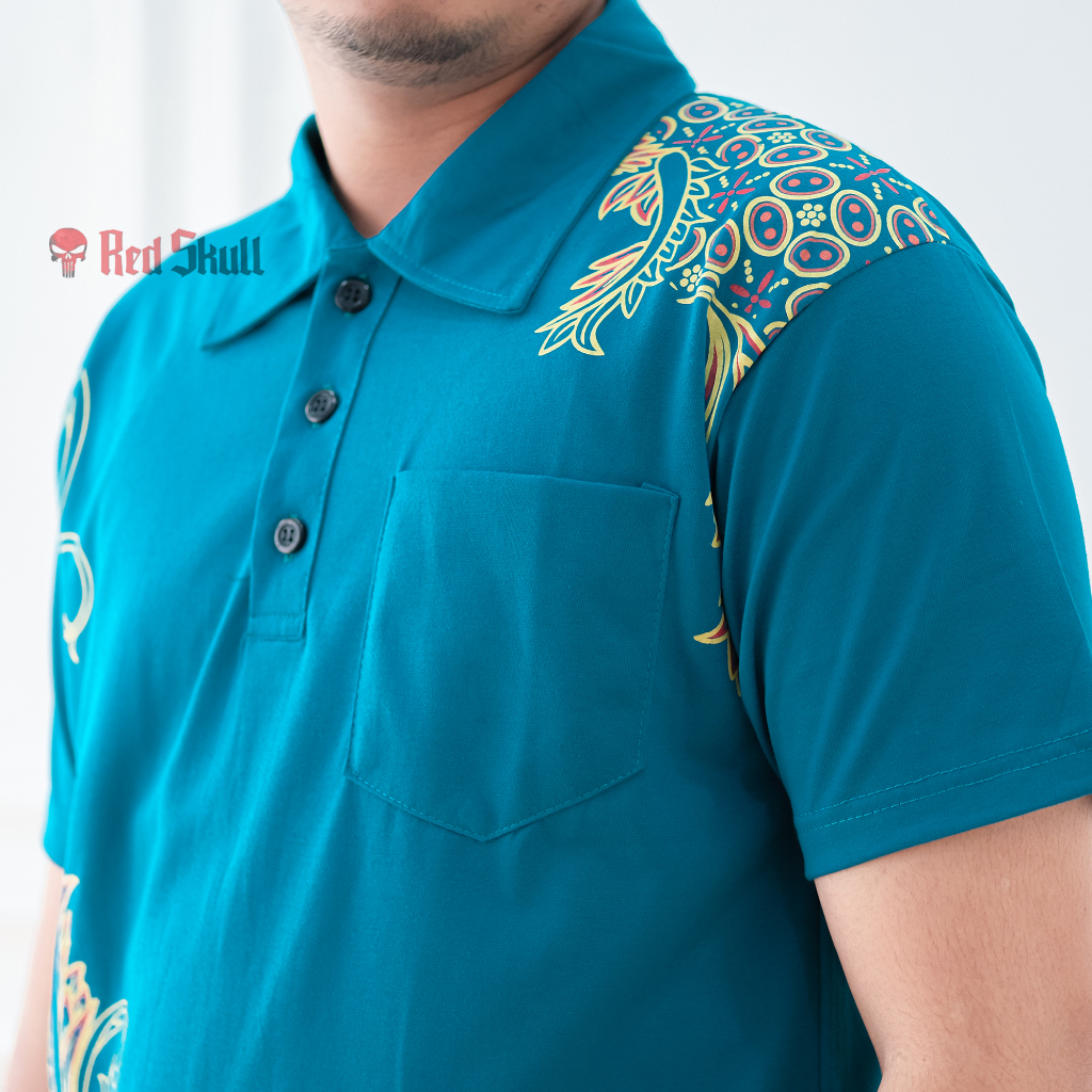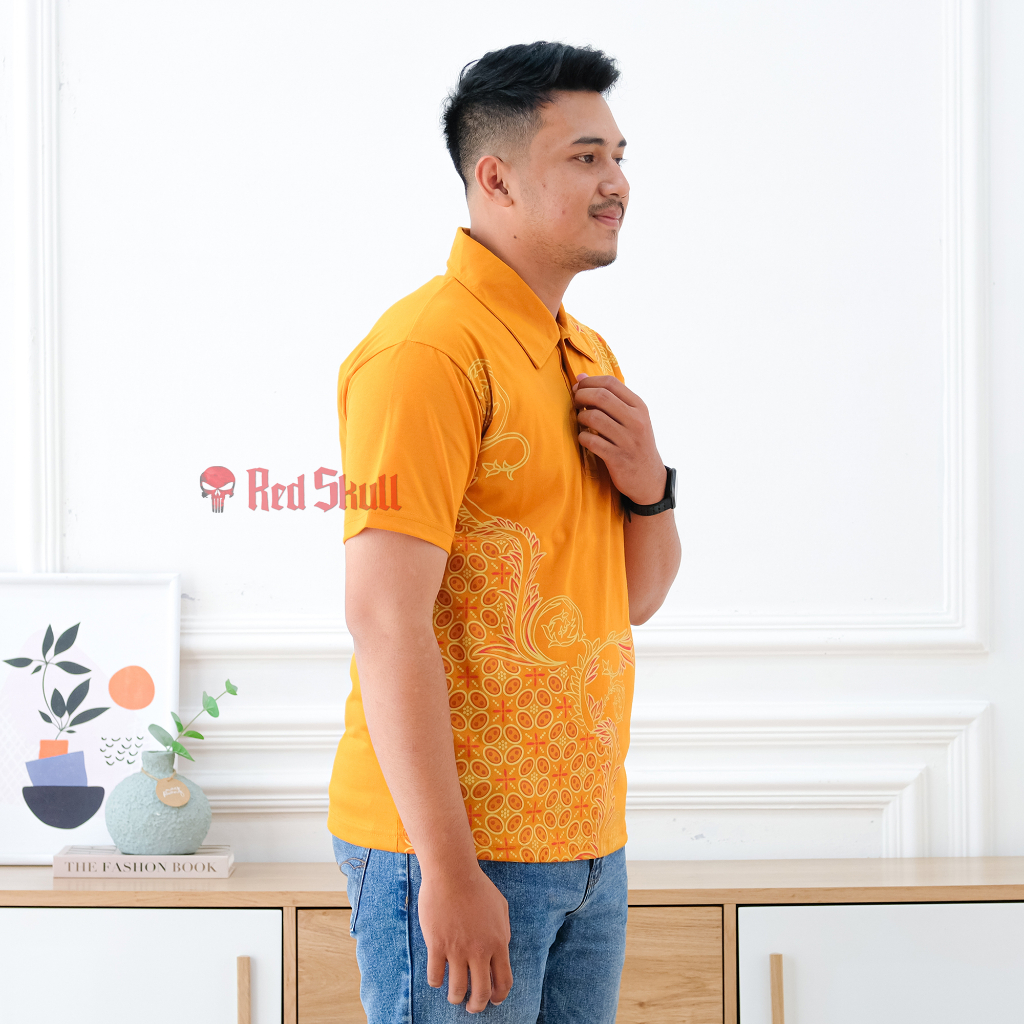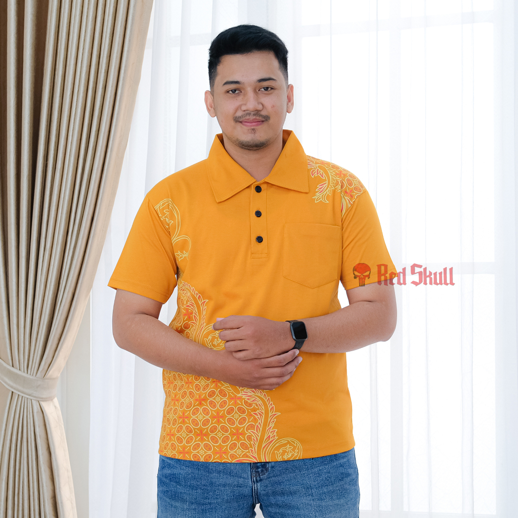 Detail RED SKULL Kaos Kerah Polo Batik Kawung Bulat Samping Bahan Katun Ada Saku