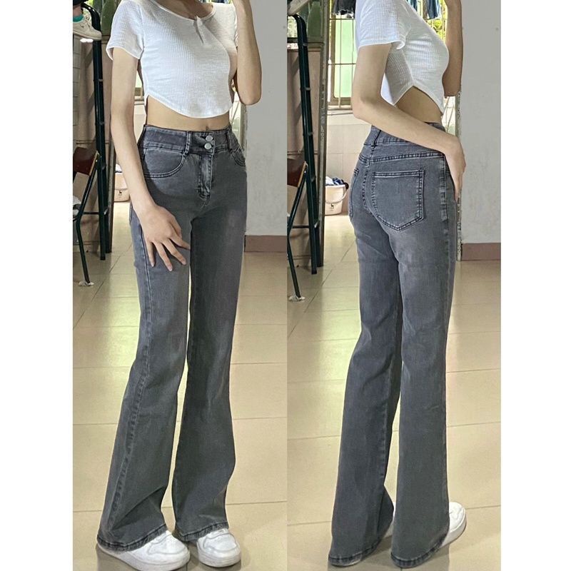 Pakaian Wanita > Batik > Bawahan Batik > Red Smokey grey flared jeans wanita musim dingin American retro slim slim high waist straight pants high street tide ins