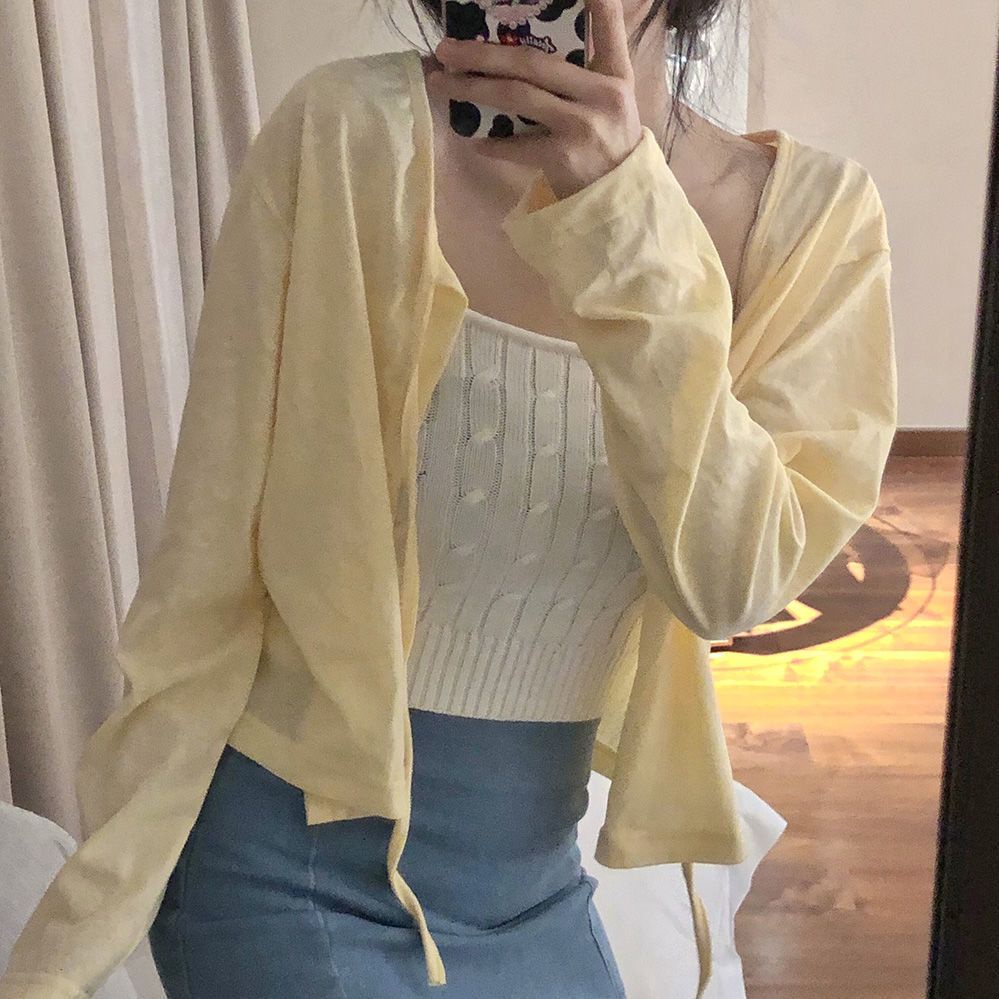 Pakaian Wanita > Atasan > Kemben > Red Super Fairy Tipis Kecil Kardigan Lengan Panjang Atasan Wanita Musim Panas Pendek Mantel Tipis Perlindungan Matahari Pakaian Pakaian Luar Musim Gugur fashion Wanita