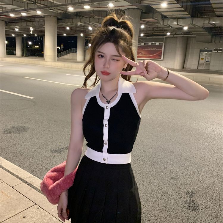 Red Sweater rajut lengan panjang robek manis dan pedas wanita musim semi, musim gugur dan musim dingin dengan desain unik dan sweater pendek pakaian luar yang chic
