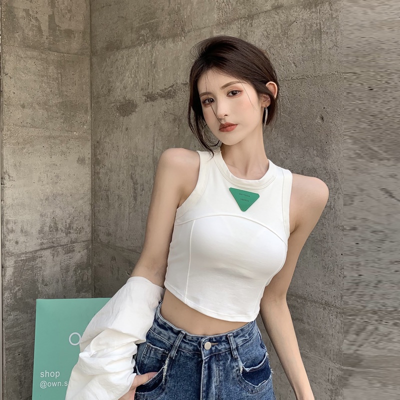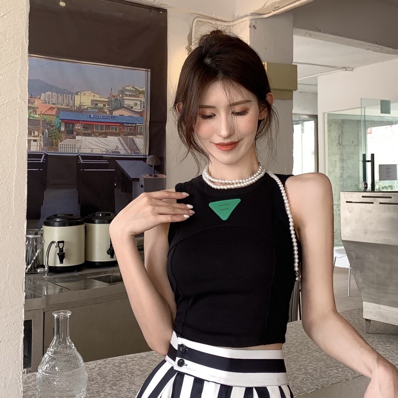 Detail Red Tanpa lengan dengan bantalan dada olahraga memakai rompi kecil perempuan musim panas manis hot gadis self-budidaya kemeja bottoming pendek cropped top