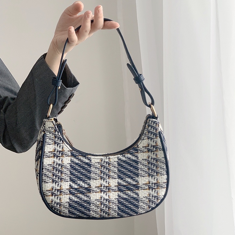 Detail Red Tas wanita musim panas ceruk desain sense 2022 baru all-match merek trendi pola kotak-kotak berbentuk bulan sabit portabel ketiak tas Messenger