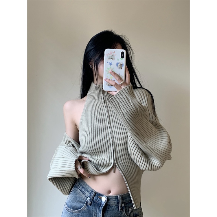Red Temperamen Baru Gadis Panas Setelan Rajutan Cardigan Rompi Bahu Jaket Wanita Musim Semi Pelangsing Diri Budidaya Rompi Two-Piece Set