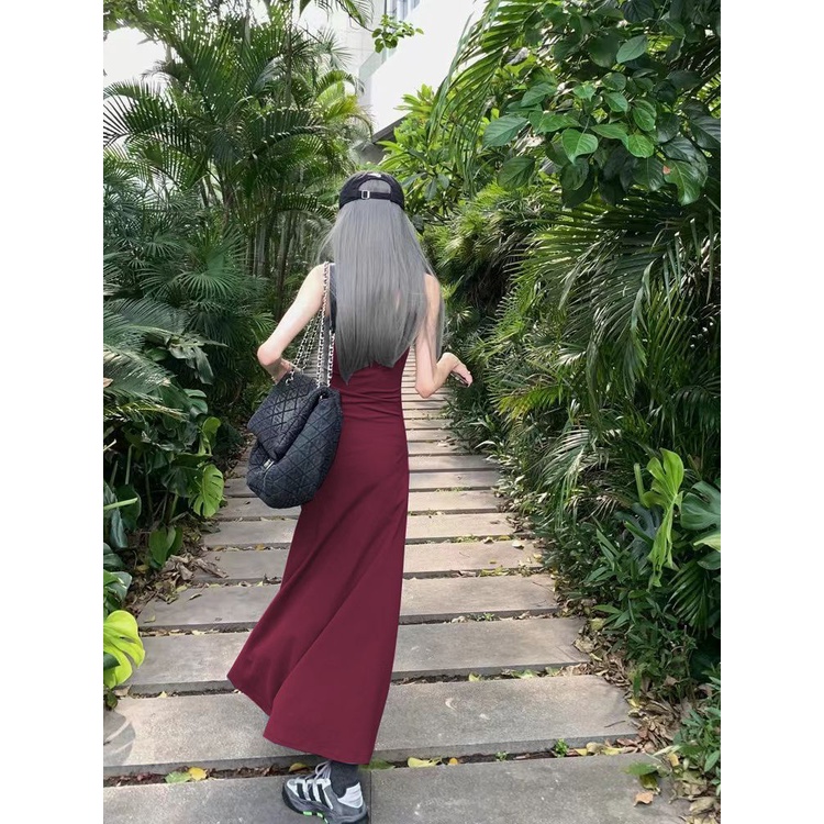 Detail Red Temperamen elegan suspender dress wanita keinginan murni manis dan pedas diri budidaya pelangsing pinggang bagian dalam rok bottoming rok selutut