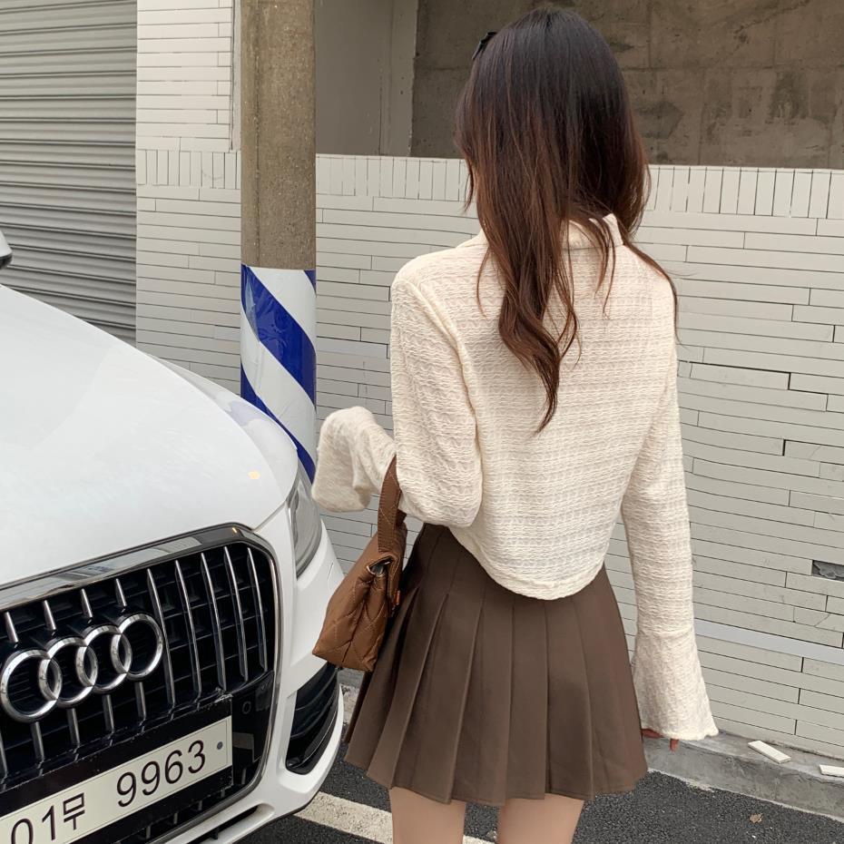 Detail Red Terompet Lengan Kemeja Wanita Musim Gugur 2023 Baru Bahasa Perancis Gaya Pendek Manis dan Gaya Pedas Tipis Pakaian Lengan Panjang cardigan Top