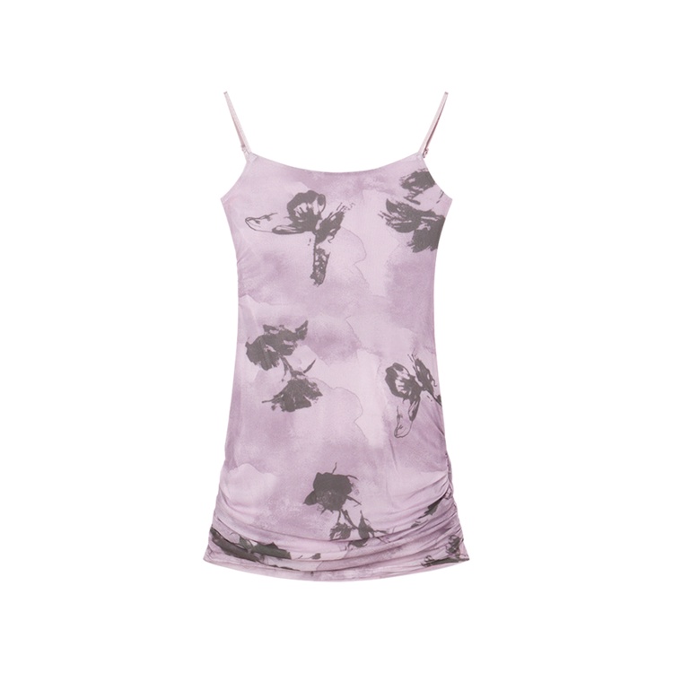 Detail Red Tie-dye kupu-kupu cetak ungu suspender dress perempuan musim panas hot gadis mesh tas pinggul rok ketat rok seksi