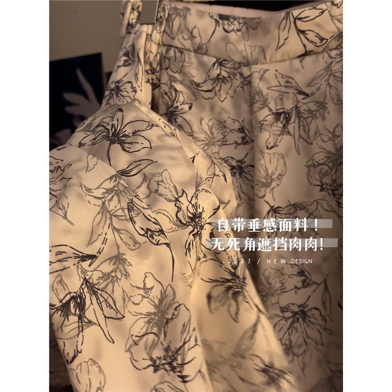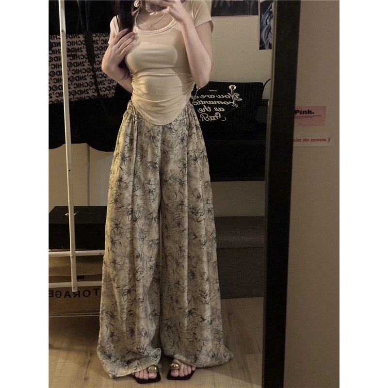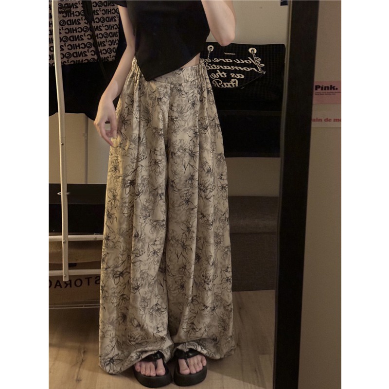 Red Tie-dye mengepel lebar kaki celana kasual pinggang tinggi wanita musim panas 2023 rasa desain baru retro longgar menggantungkan celana pasang