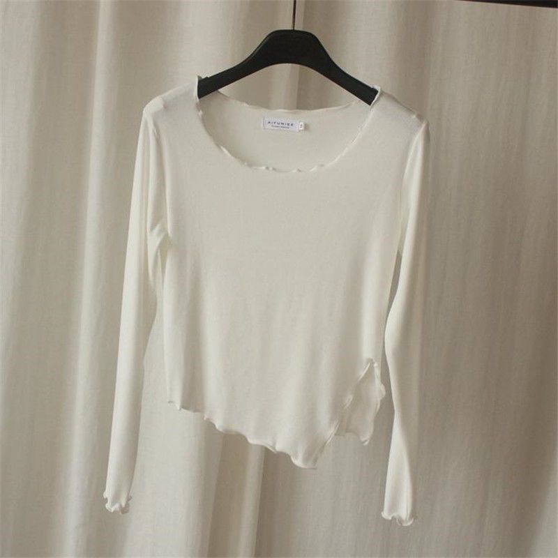 Pakaian Wanita > Batik > Atasan Batik > Red U-leher T-shirt wanita musim semi dan musim gugur rasa desain bagian tipis ramping bagian pendek ceruk lengan panjang kemeja bottoming keinginan murni hot gadis pakaian