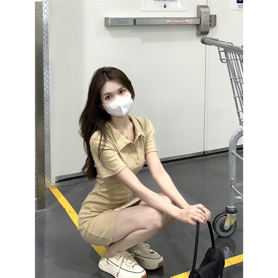 Detail Red Xiaoxiangfeng Polo collar dress wanita musim panas seksi pinggang pelangsing paket pinggul desain rok pendek rasa ceruk