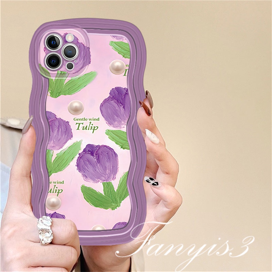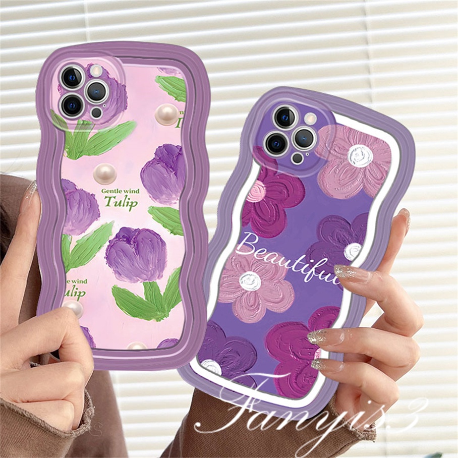 Detail Redmi 12C 10C 10A 10 9 9A 9C 9T Note 11 Pro+11s 11 10s 10 9s 9 8 Pro Poco X4Pro X3 Pro X3NFC M4 Mi 11 Lite 10TPro Bunga Tulip Ungu Gelombang Bingkai Casing Ponsel TPU Soft Cover