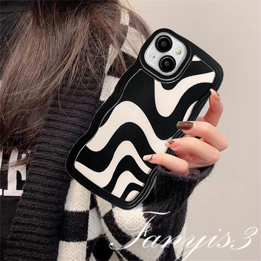 Handphone & Aksesoris > Casing & Skin > Casing & Skin Handphone > Redmi 12C A1 10C 10A 10 9 9A 9C 9T Note 11 Pro+ 11s 11 10s 10 9s 9 8 Pro Poco X4Pro X3 Pro X3NFC M4 Mi 11 Lite 10TPro Black And White Stripes Wave Frame Phone Case TPU Soft Cover