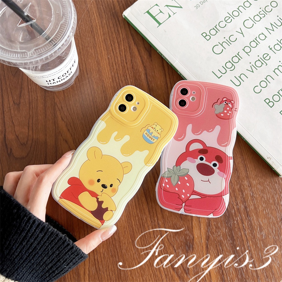 Detail Redmi 12C A1 10C 10A 10 9 9A 9C 9T Note 11 Pro+ 11s 11 10s 10 9s 9 8 Pro Poco X4Pro X3 Pro X3NFC M4 Mi 11 Lite 10TPro Strawberry Bear Gelombang Frame Phone Case TPU Soft Cover Pelindung