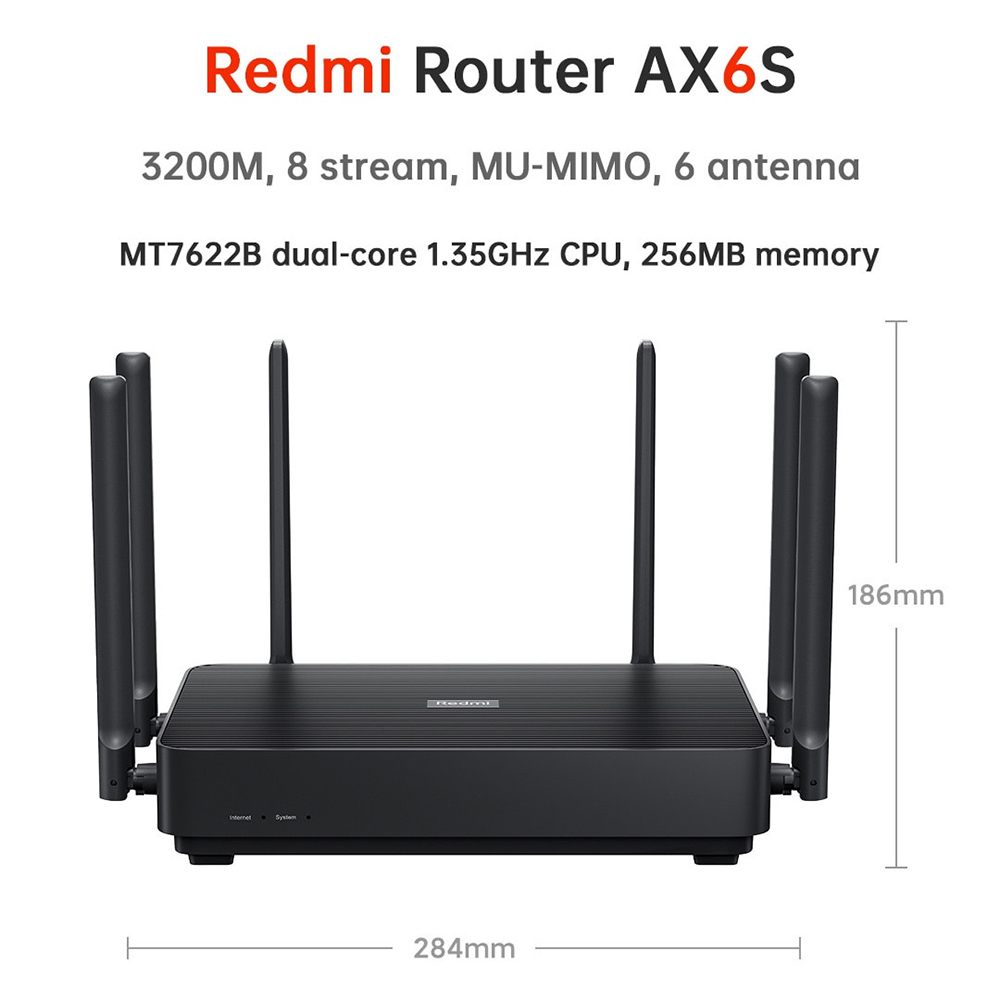 Detail Redmi AX6S Router WiFi 6 Gigabit Dual Band 2.4/5.0GHz 6 Antena - RB03 - Black