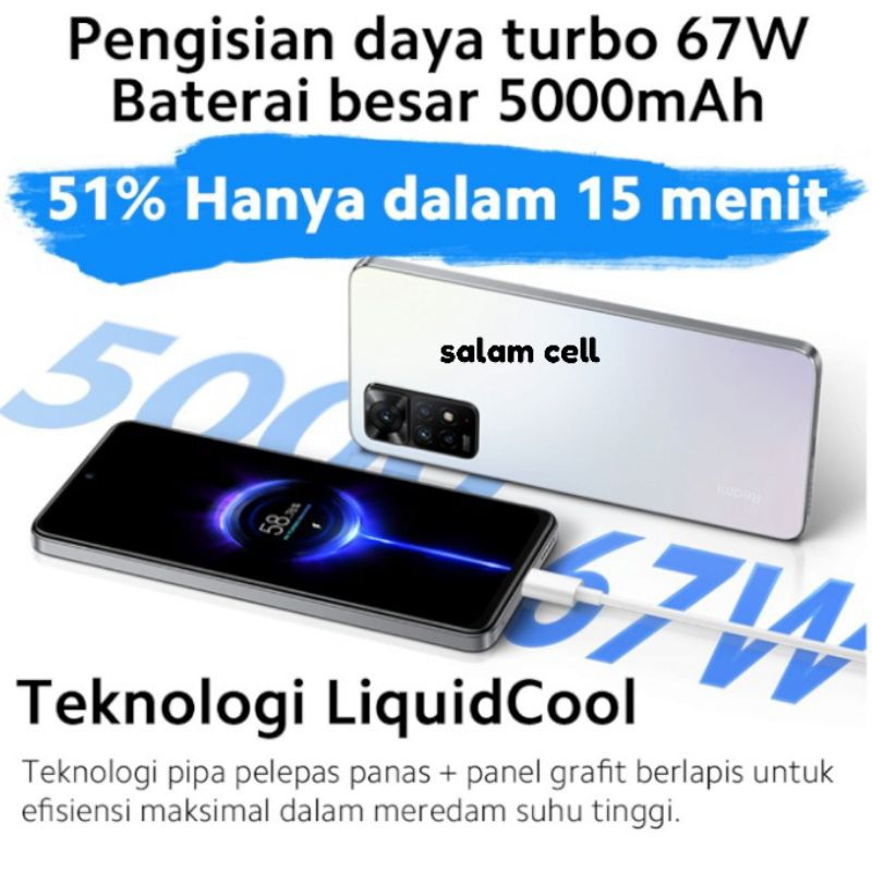 Prosesor MediaTek Helio G96 CPU: CPU octa-core, hingga 2,05GHz GPU: ARM Mali-G57 MC2 RAM dan Kapasitas Penyimpanan 6GB+128GB / 8GB+128GB LPDDR4X + UFS2.2 Penyimpanan dapat ditambah hingga 1TB *Kapasitas penyimpanan dan RAM yang tersedia lebih sedikit dari memori total karena sebagian digunakan untuk sistem operasi dan perangkat lunak bawaan. Dimensi Tinggi: 164,19 mm Lebar: 76,1 mm Ketebalan: 8,12 mm Berat: 202 g Layar Layar 120Hz Super AMOLED Refresh rate: Hingga 120Hz Kecerahan: HBM 700 nit (typ), 1200 nit kecerahan puncak (typ) Rasio kontras: 4.500.0000:1 Resolusi: 2400 x 1080 Rentang warna luas DCI-P3 395 ppi Sunlight display Mode baca 3.0 Kamera belakang 108MP kamera wide 108MP f/1,9 0,7 μm, binning 9-in-1 menjadi satu piksel besar berukuran 2,1 μm Ukuran sensor 1/1,52” Lensa 6p 8MP kamera ultra-wide Bidang tangkapan 118° 2MP kamera makro f/2,4 2MP sensor depth f/2,4 Perekaman video kamera belakang 1080p 1920x1080 | 30fps 720p 1280x720 | 30fps Kamera depan 16MP kamera depan f/2,4 Perekaman video kamera depan 1080p 1920x1080 | 30fps 720p 1280x720 | 30fps Baterai & Pengisian Daya 5000 mAh (typ) Pengisian daya turbo 67W Pengisi daya bawaan 67W USB-C Keamanan Sensor sidik jari di bagian samping Buka Kunci dengan Pengenalan Wajah Berbasis AI NFC *Ketersediaan berbeda-beda tergantung pasar *Fungsi mungkin berbeda di beberapa pasar. Jaringan & Konektivitas SIM1 +Hybrid(SIM atau MicroSD) 2G: GSM: 850 900 1800 1900 MHz 3G: WCDMA:1/2/4/5/8 4G: LTE FDD:1/2/3/4/5/7/8/12/13/17/20/26/28/32/66 4G: LTE TDD:38/40/41 Bluetooth 5.1 Protokol Wi-Fi: 802.11 b/g/n/ac Navigasi & Deteksi Posisi GPS: L1 |GLONASS: G1 | Kompas: B1I Audio Speaker ganda Jack headphone 3,5 mm Sertifikasi Hi-Res Audio Sensor Sensor jarak | Sensor cahaya ambien | Akselerometer | Kompas elektronik | IR blaster |Giroskop Sistem Operasi MIUI 13, berbasis Android 11 Isi Kemasan Redmi Note 11 Pro / Adaptor / Jabel USB Tipe-C / Pembuka SIM / Casing Pelindung / Panduan Memulai Cepat / Kartu Garansi