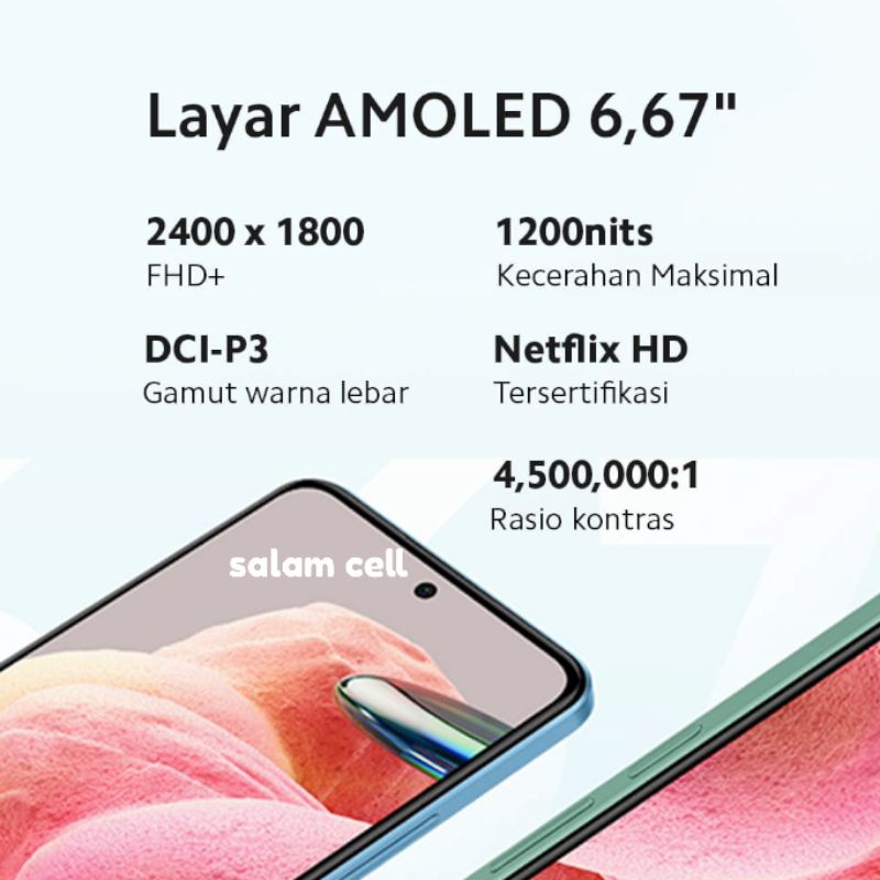 Semua model Redmi Note 12 menampilkan layar OLED yang mengesankan dan menarik. Tonton konten favorit kamu menjadi hidup dengan produksi ulang warna hitam dan cerah yang sempurna. 2400 x 1800 FHD+, 1150nits Kecerahan Maksimal, DCI-P3 Gamut warna lebar, Netflix HD Tersertifikasi, 4.500.000:1 Rasio kontras.