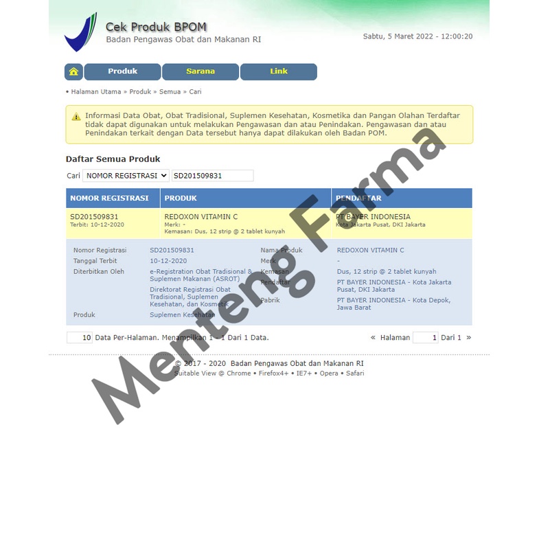 Cara Penyimpanan: Simpan di tempat kering pada suhu di bawah 30°C