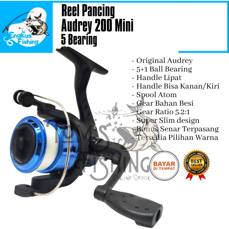 Detail Reel Pancing Audrey 200 Mini (5 Bearing) Bonus senar murah - Engkus Fishing
