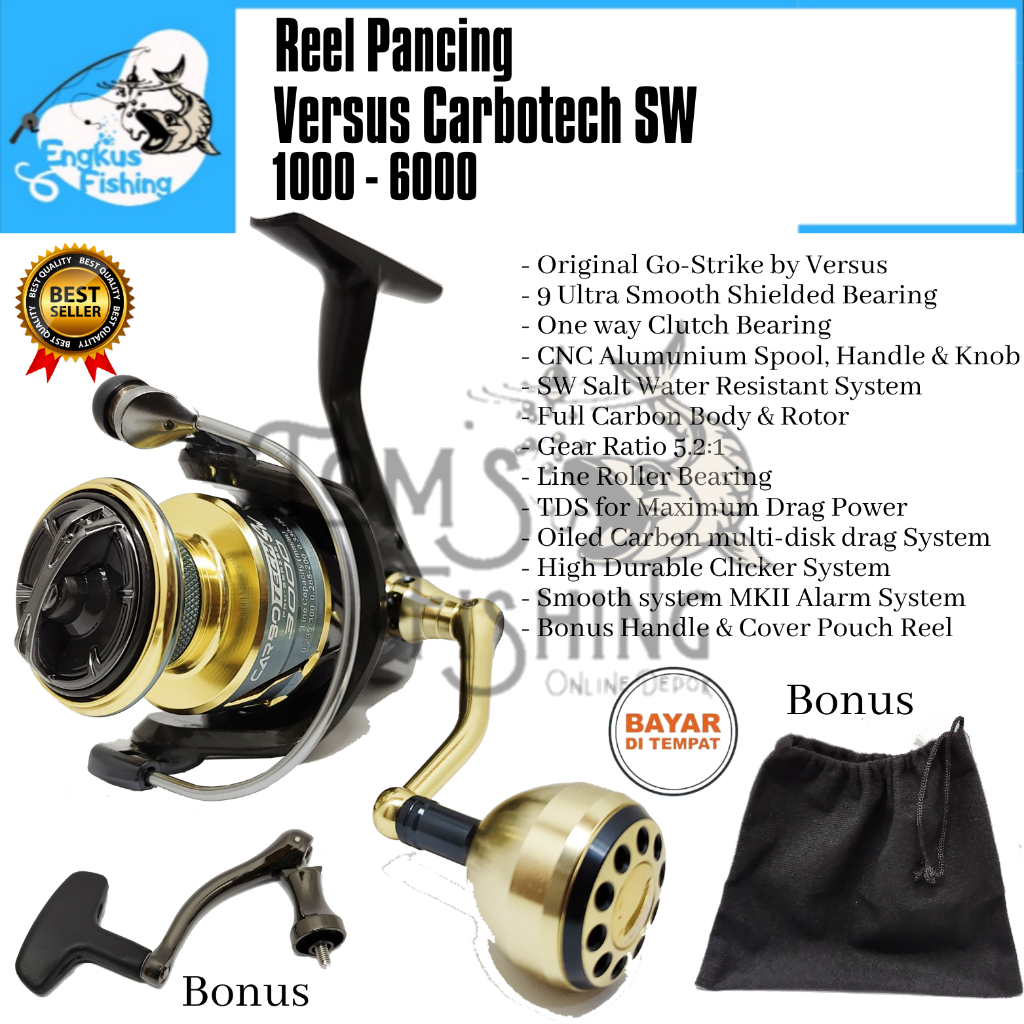 Detail Reel Pancing Versus Carbotech SW Terbaru 1000 - 6000 (9 Bearing) Salt Water Murah - Engkus Fishing