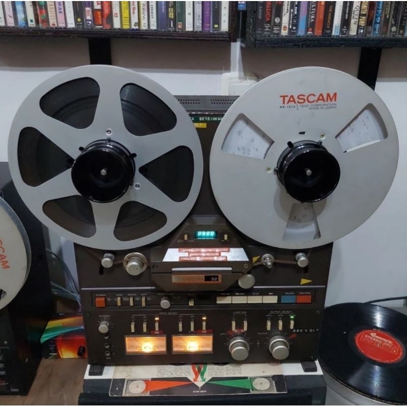 Reel to Reel player recorder Tascam 32. Teac - Tokyo. 1/4 inch width tape reel. AC 220 Volt. Track system: 2-track, 2-channel, stereo system. Heads: 2x record/playback, 1x erase. Motor: 2x reel, 1x capstan. Reel size: up to 10.5 inch reel. Equalization: NAB or IEC. Tape speeds: 7 1⁄2 15 ips. Semua berfungsi Normal, termasuk recordnya. Utuh, Mulus, Full Orisinil, Barang simpanan, terawat. Harga sudah termasuk sepasang adapter dan aluminium 10.5 inch reel tape bawaan ori merk tascam dan merk teac, termasuk full pita 10.5 inch isi lagu The Beatles. Bonus kabel konektor untuk recording. Real pict, sesuai gambar. Tidak ada PR.