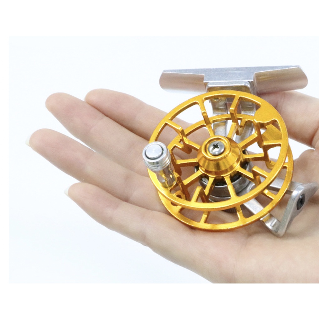 spesifikasi -diameter 50mm kapasitas senar no 4 panjang 120m -bahan full aluminium -handle kanan -suara halus -putaran maju mundur kuat dan halus -berat 50 gram -packingan dengan box -di pasang pada joran tegek,joran kolong , ice fishing rod warna gold ready