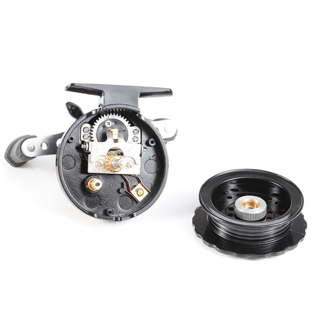 Reel Tokos handle kiri 4+1 ball bearings gear ratio 2.6:1 one way system material: alumminium alloy +plastic+stainless steel+rubber+brass ukuran diameter spool 6,5cm warna hitam gold