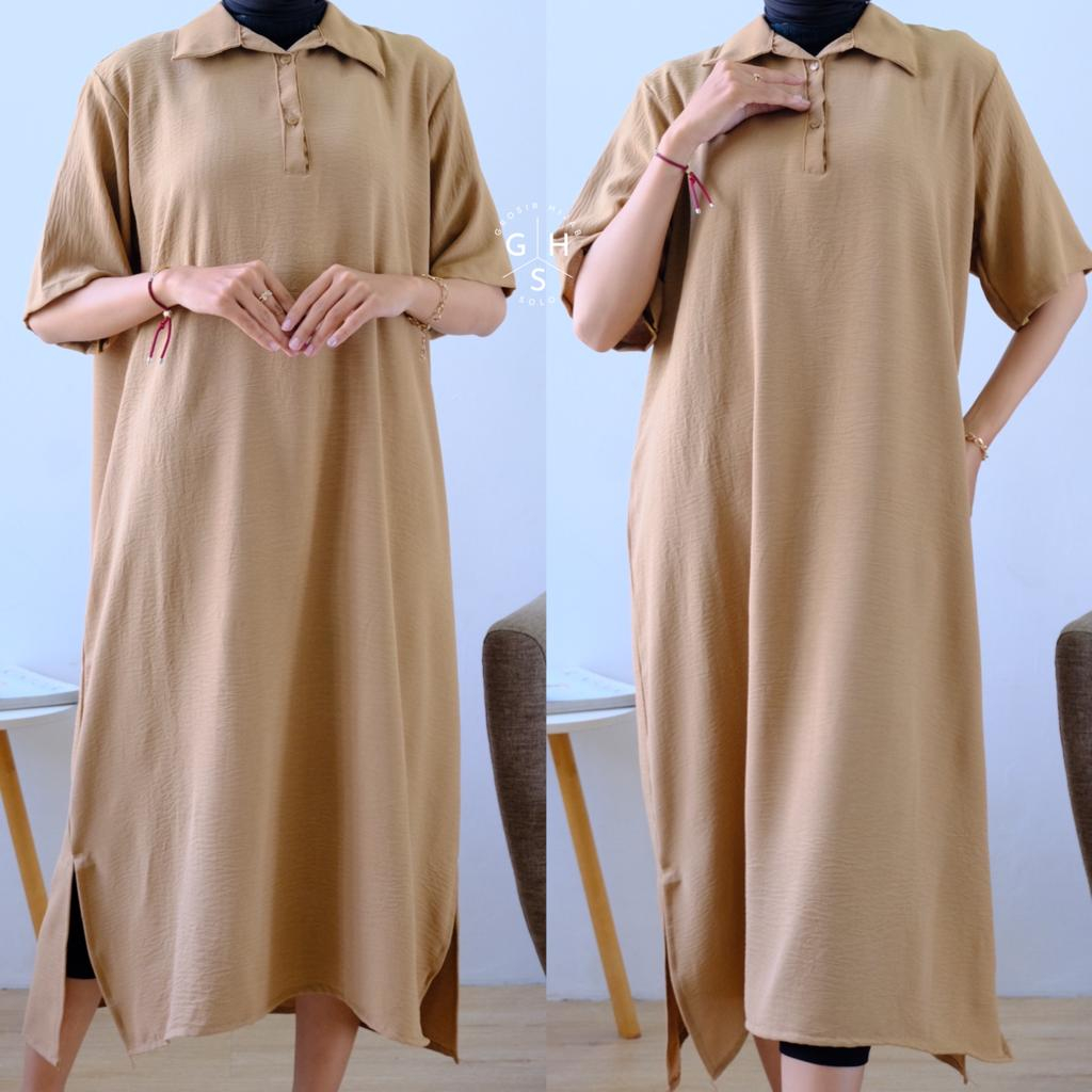 Pakaian Wanita > Dress > Midi Dress > REGINA TUNIK OVERSIZE DAILY DRESS BELAH WANITA ATASAN WANITA CRINCLE AIRFLOW (AMD)